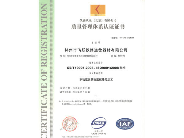 林州市飛躍鐵路道岔器材有限公司位于舉世聞名的世界八大奇跡之一“人工天河”紅旗渠畔,晉、冀、豫三省交界處,交通、通訊便捷。 公司擁有職工和管理人員120多人,高工5名,技術(shù)人員23人。擁有先進(jìn)的鑄造機(jī)加工設(shè)備和完整的質(zhì)量檢測體系,使我公司連續(xù)數(shù)年被評為“重合同守信用”和“重量管理”先進(jìn)單位。公司生產(chǎn)的主要產(chǎn)品有:輕重軌道岔及各種工具。按種類區(qū)分有:單開道岔、對稱道岔、三開道岔、渡交組合道岔等。特殊要